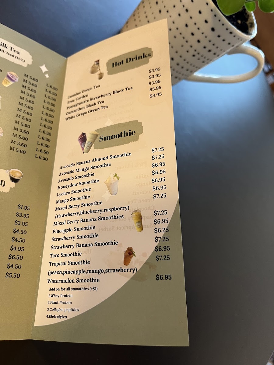 - Fruit Teas such as the Honeydew Fruit Tea and Peach Fruit Tea, priced around US$6.75, are refreshing choices to quench your thirst.